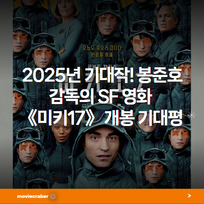 2025년 가장 주목받는 SF 대작, 봉준호 감독의 《미키 17》. 그의 새로운 도전이 어떤 감동과 메시지를 선사할지, 극장에서 직접 확인해 보시기 바랍니다. 개봉일은 2025년 2월 28일입니다.